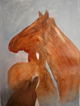2,. No nos preocuparemos en los detalles, esta capa no suele cubrir el dibujo ya que el óleo es bastante transparente y dejara que veamos el dibujo que hemos realizado así podremos corregirlo si fuese necesario.