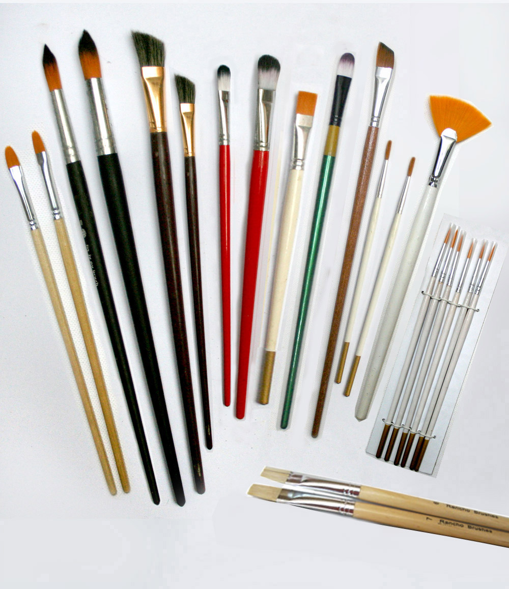 Todos estos pinceles son chinos, algunos son muy economicos otros no pero se puedan encontrar en cualquier tienda, todos son muy utiles, por mi parte no creo que un pincel de pelo natural haga mayor diferencia en mis obras, he tenido varios pinceles de pelo de Martha, de los mas caros, son muy buenos no hay que negarlo, pero hace muchos años que deje de utilizarlos y no los extraño para nada, la foto esta en buena calidad para que la puedas imprimir y consultar en tu tienda de materiales mas cercana.